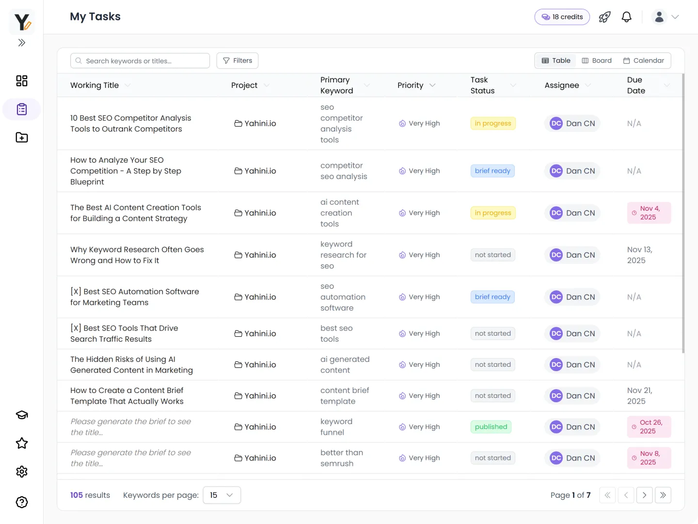 "Yahini.io excels in automated keyword organization by funnel stages, saving hours of manual work and letting me confidently plan TOFU, MOFU, and BOFU content. The tool provides actionable insights into ranking difficulty, search intent, and generates expert-level content briefs customized for each project."